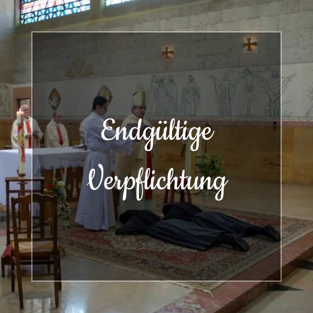 Am Ende der zeitlichen Gelübde verpflichtet sich die Schwester durch die ewige Profess für immer. Durch ihre Hingabe weiht sie sich endgültig Gott in der Kongregation.