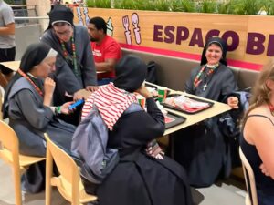 9 Sœurs Oblates ont participé aux JMJ. Elles accompagnaient des groupes de Linz (Autriche), de Troyes et de Paris (France), de Quito (Equateur). A elles seules elles représentaient 6 pays ! Certaines ont même eu la joie de se croiser à l’aéroport !