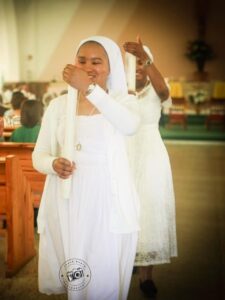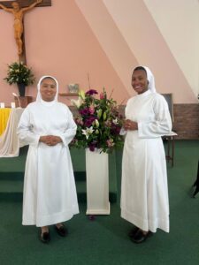 Nos deux postulantes, Sœur Nicole et Sœur Natalia, ont eu la joie de commencer leur noviciat. Au cours d’une belle cérémonie, elles ont reçu l’habit religieux et un nom nouveau qui marque leur entrée dans une nouvelle étape de leur vie chrétienne et religieuse. Sœur Nicole devient Sœur Nicole-Theresa et Sœur Natalia, Sœur Sr Natalia-Gabriel !